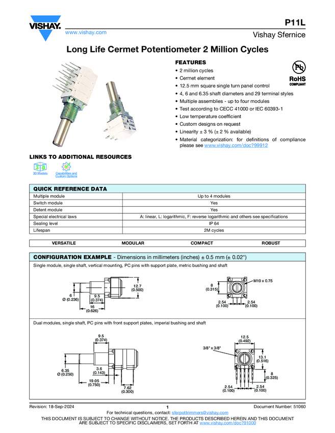 P11L Long Life Cermet Potentiometer 2 Million Cycles