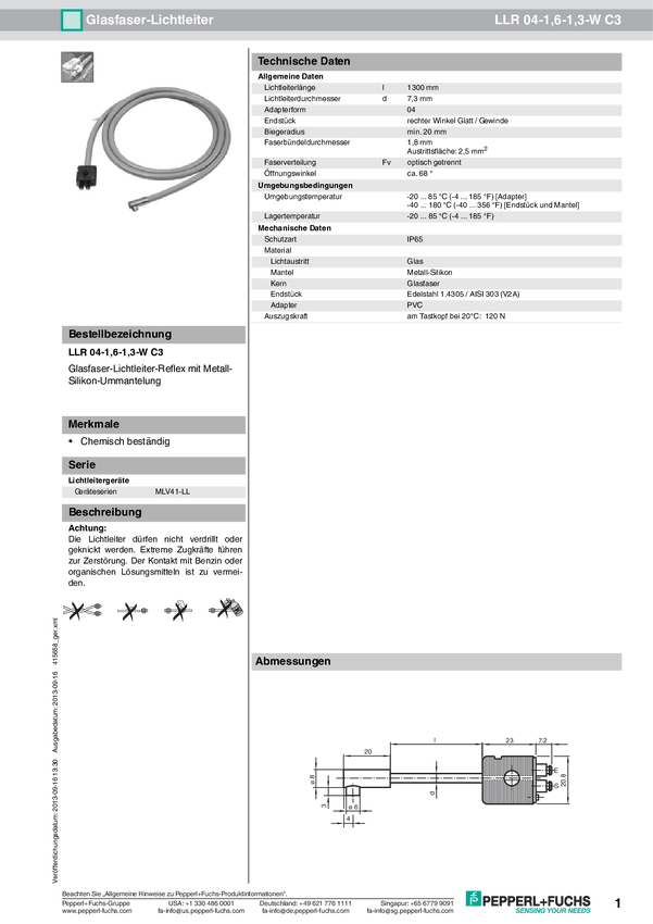 Pepperl+Fuchs 415658 Przewód światłowodowy LLR 04-1,6-1,3-W C3 1 szt.