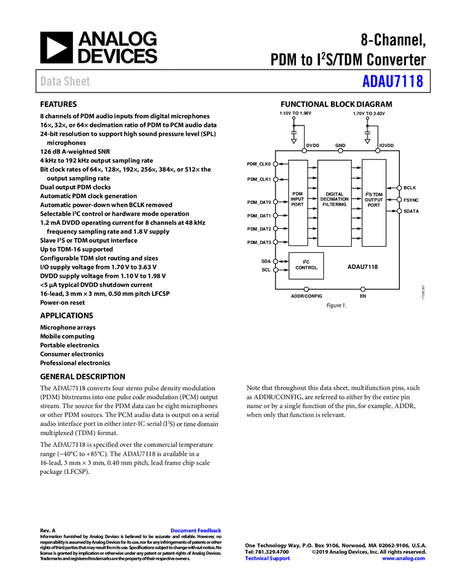 ADAU7118 8 Channel, PDM to IS/TDM Converter