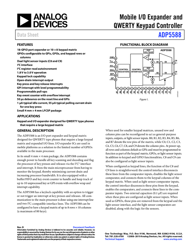 ADP5588 Mobile I/O Expander and QWERTY Keypad Controller