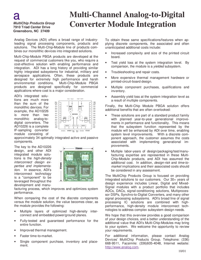 AD14160L 480-MFLOP, Quad DSP, 3.3v, CBGA Package
