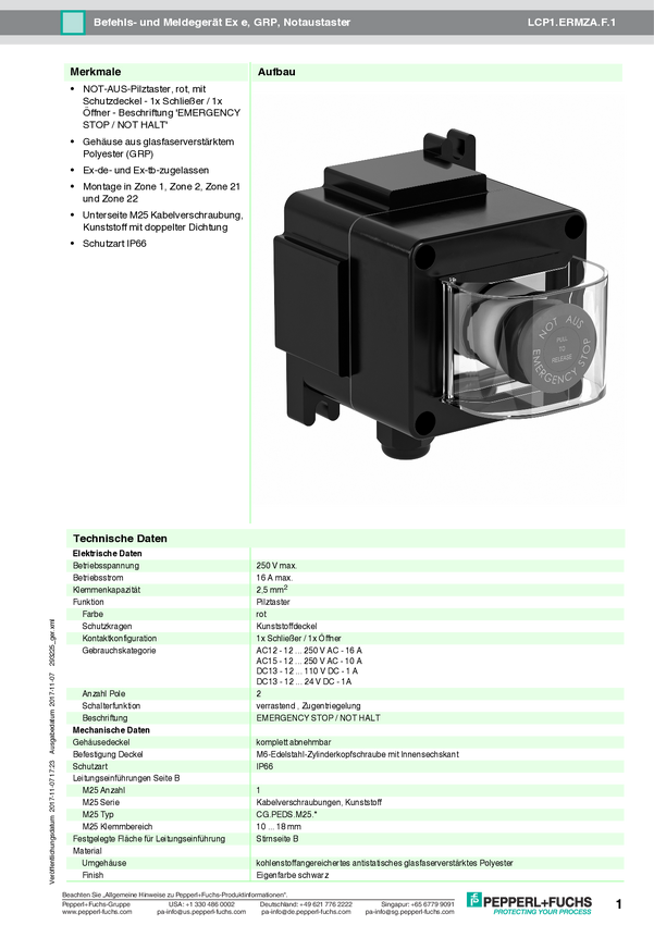 Pepperl+Fuchs LCP1.ERMZA.F.1 Przełącznik sygnalizacyjny 1 szt.