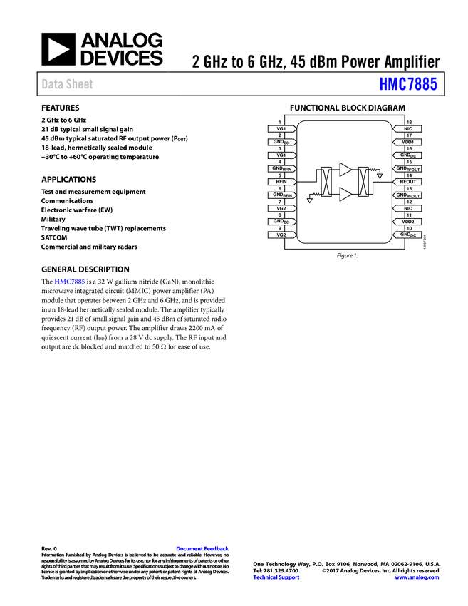 HMC7885 2 GHz to 6 GHz, 45 dBm Power Amplifier