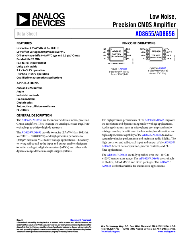 AD8656 Low Noise, Precision CMOS Dual Amplifier