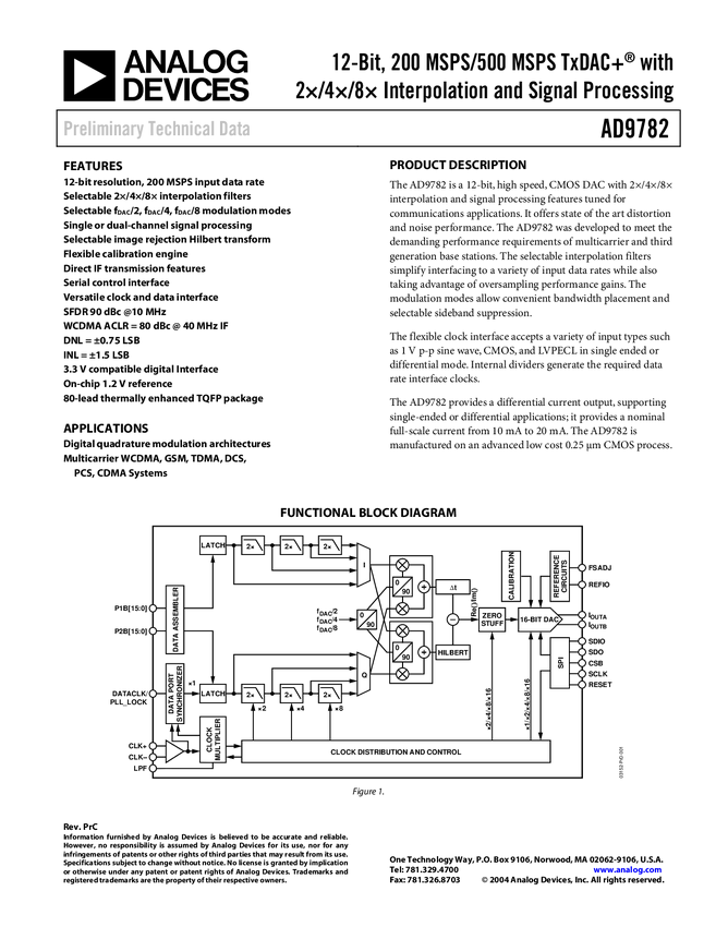 AD9782 12-Bit, 200 MSPS/500 MSPS ® Converter