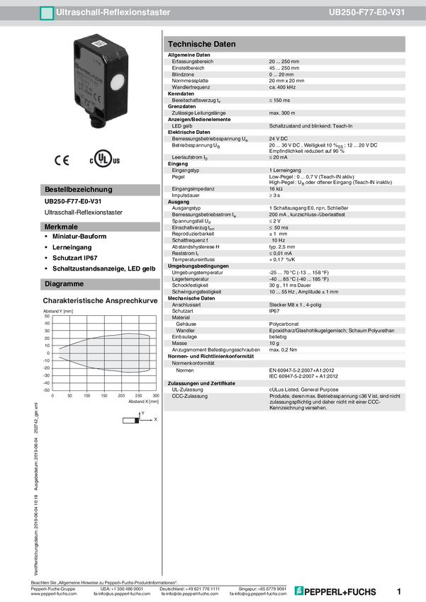 252742 Czujnik fotoelektryczny, refleksyjny Pepperl+Fuchs UB250-F77-E0-V31 252742...