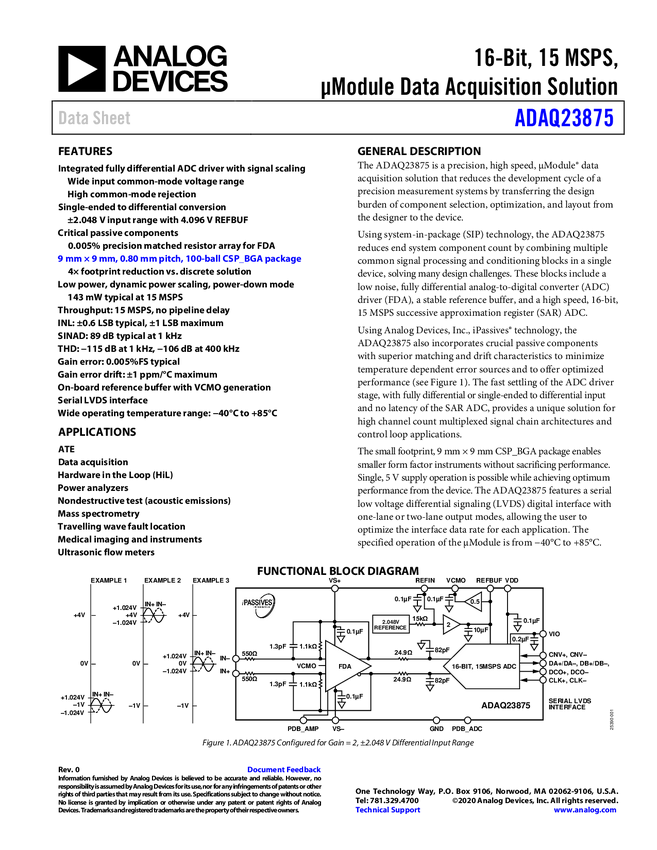 ADAQ23875 16-Bit, 15 MSPS, μModule Data Acquisition Solution