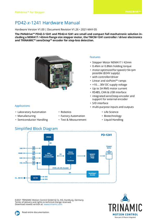 PD-1241 NEMA 17 smart stepper motor 10 to 30V, 40Ncm, 256 µSteps, SixPoint ramp con...
