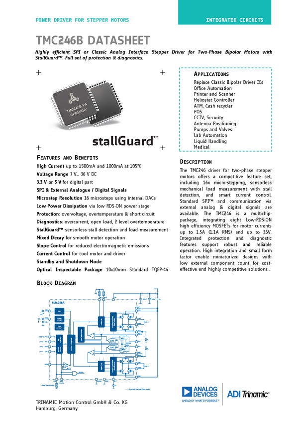 TMC246 Stepper motor driver 7 to 34V, up to 1.1A with SPI Interface, 64 µSteps