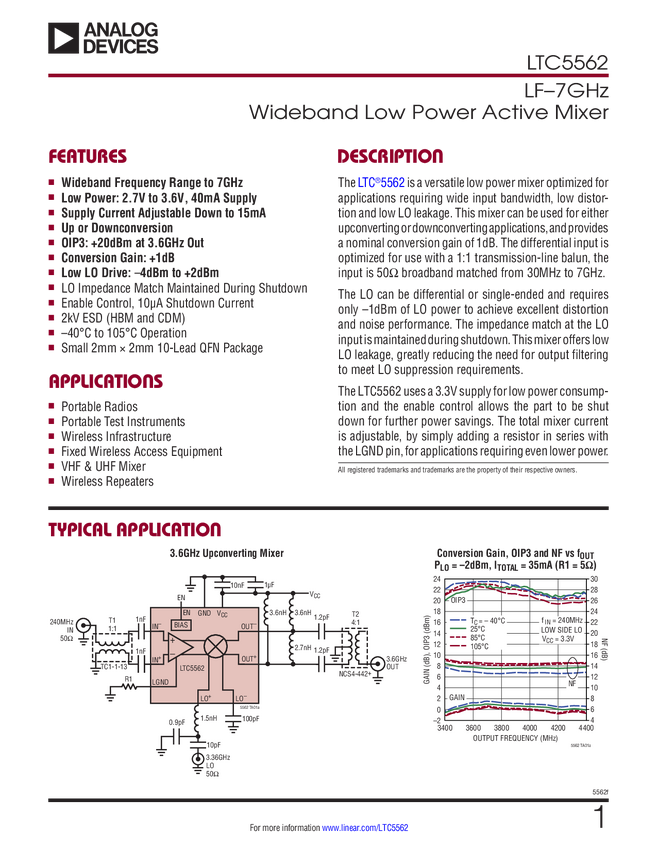 LTC5562 LF–7GHz Wideband Low Power Active Mixer