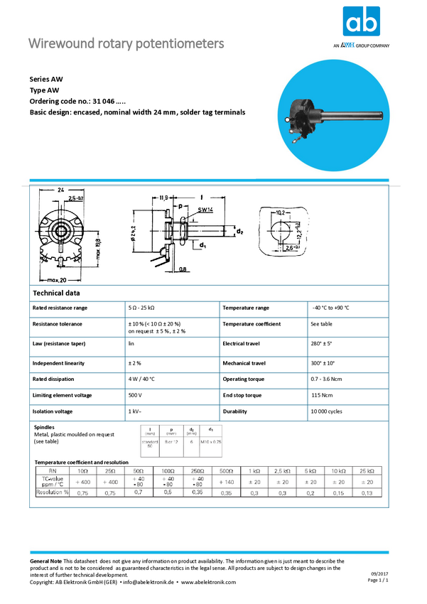 POT4W 50R, POT4W 500R, POT4W 2K5, POT4W 25K, POT4W 250R, POT4W 1K, POT4W 10K, POT4W 100R