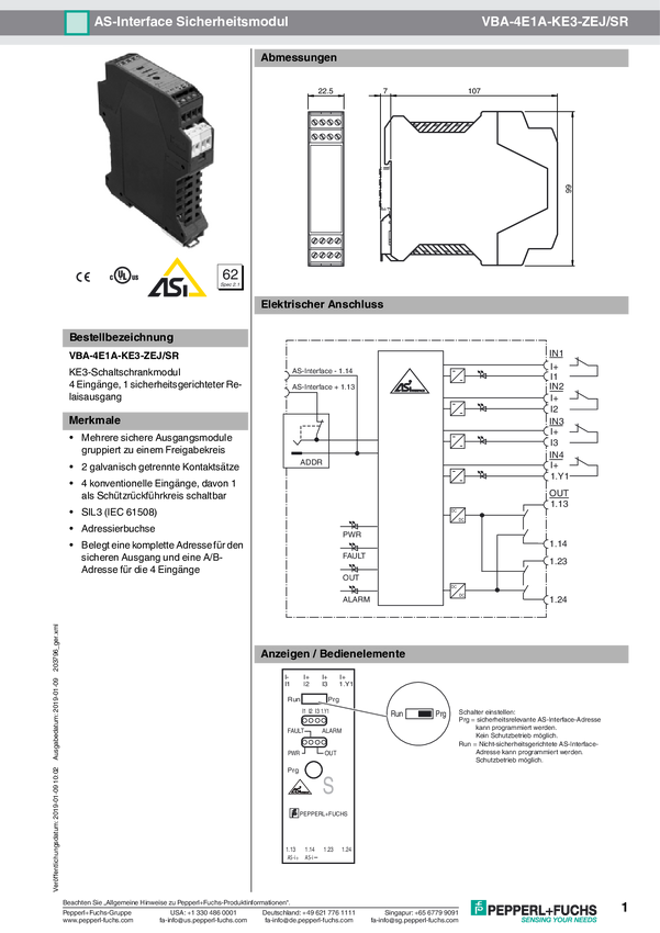 Przekaźnik bezpieczeństwa Pepperl+Fuchs 203796 VBA-4E1A-KE3-ZEJ/SR 1 szt.