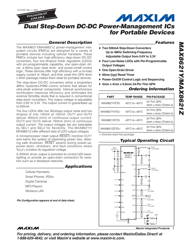 MAX8621Y Dual Step-Down DC-DC Power-Management ICs for Portable Devices