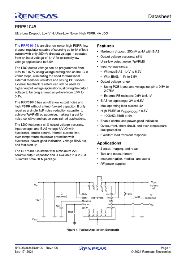 RRP51045 Ultra-Low Dropout, Low VIN, Ultra-Low Noise, High PSRR, 4A LDO
