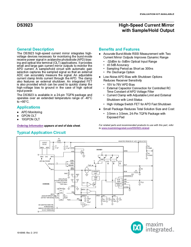 DS3923 High-Speed Current Mirror with Sample/Hold Output