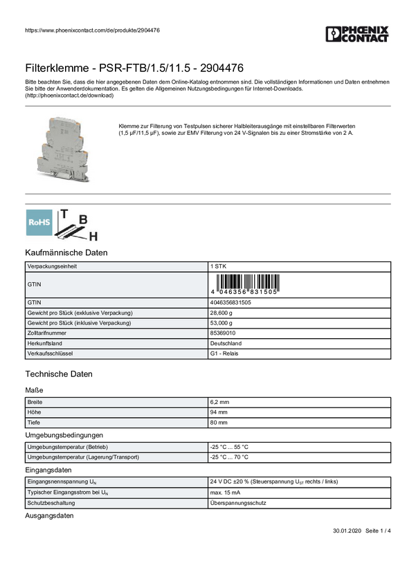 2904476 Zacisk PLC Phoenix Contact PSR-FTB/1.5/11.5 2904476