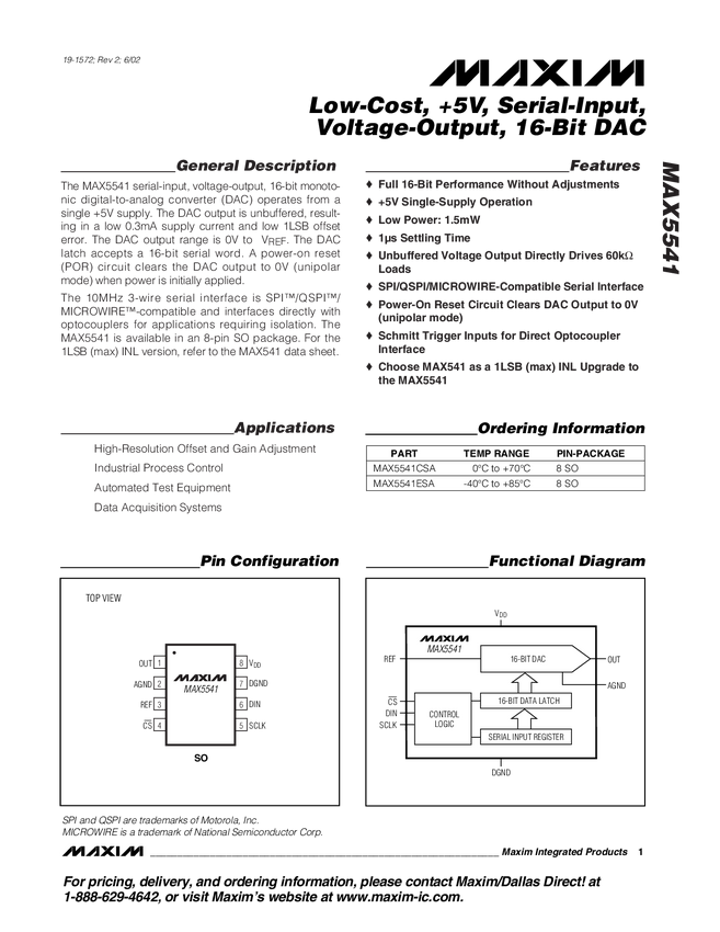 MAX5541 Low-Cost, +5V, Serial-Input, Voltage-Output, 16-Bit DAC