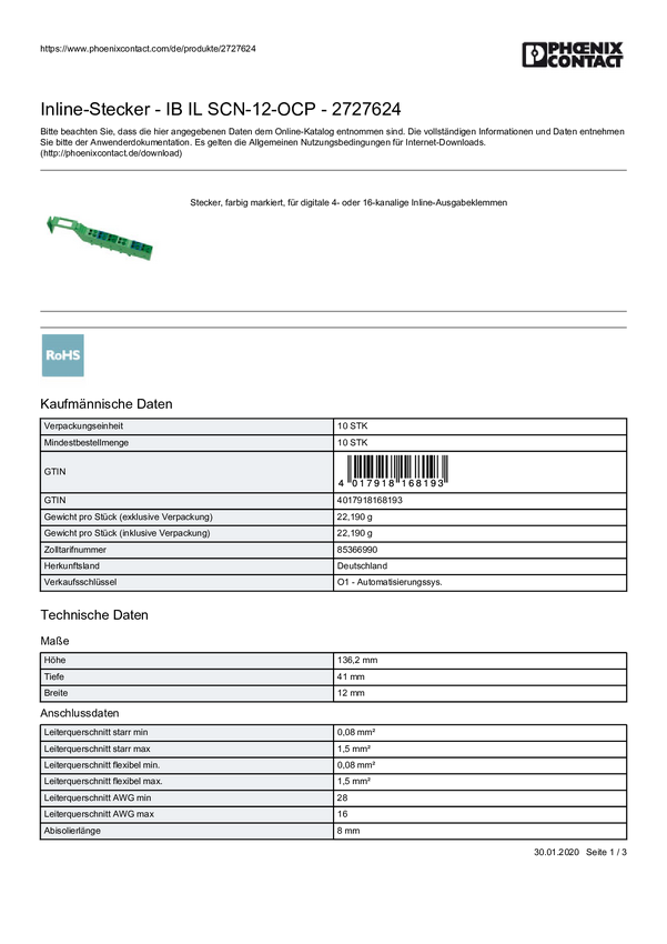 Wtyczka PLC Phoenix Contact IB IL SCN-12-OCP 2727624