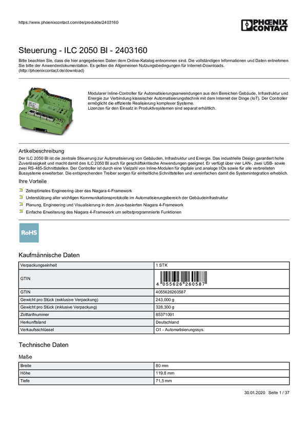 Moduł sterujący PLC Phoenix Contact ILC 2050 BI 2403160, 1 szt.
