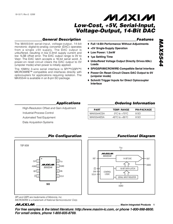 MAX5544 Low-Cost, +5V, Serial-Input, Voltage-Output, 14-Bit DAC