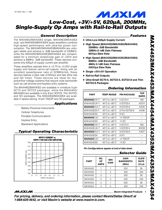 MAX4454, MAX4353, MAX4352, MAX4453, MAX4354