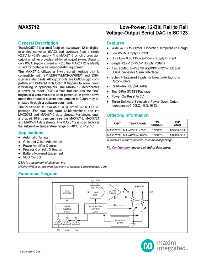 MAX5712 Low-Power, 12-Bit, Rail-to-Rail Voltage-Output Serial DAC in SOT23