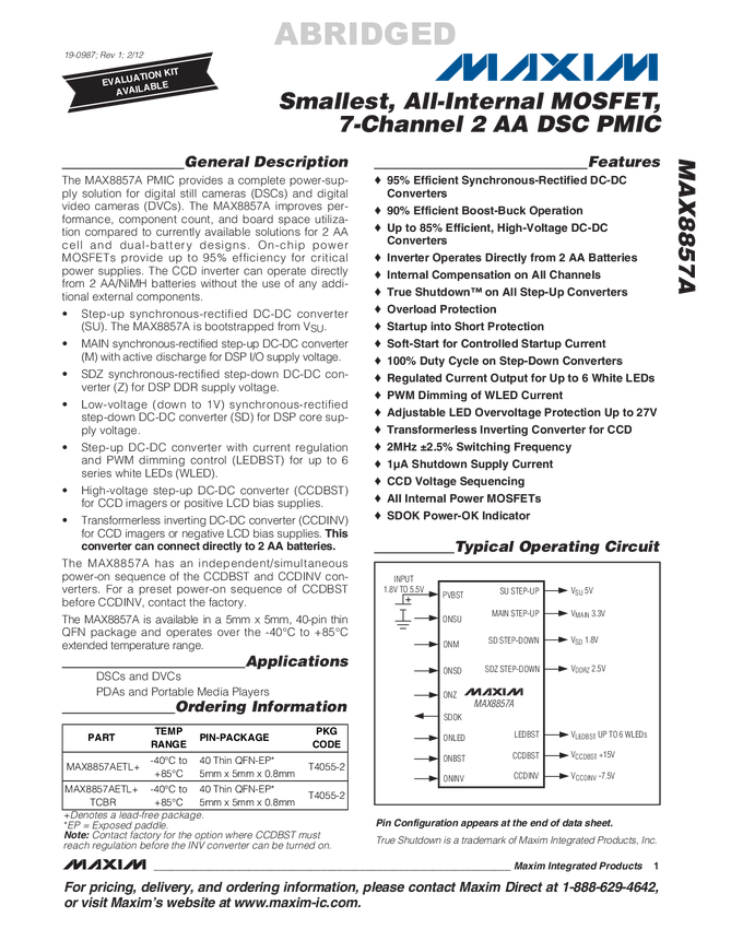 MAX8857A Smallest, All-Internal MOSFET, 7-Channel 2 AA DSC PMIC