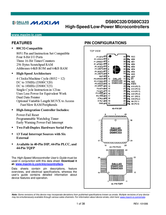 DS80C323 High-Speed/Low-Power Microcontrollers