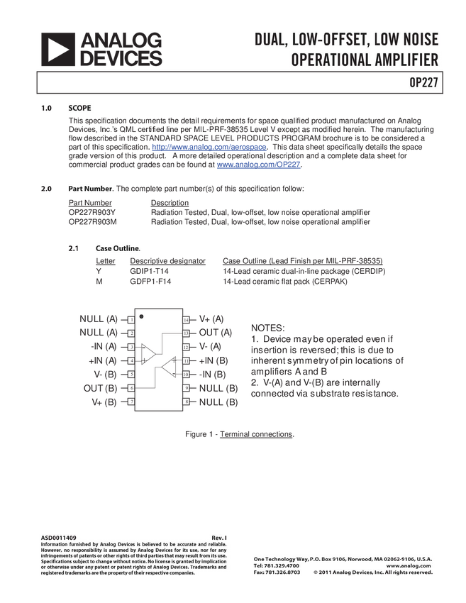 OP227S Aerospace Dual Low Noise Low Offset Inst. Op Amp
