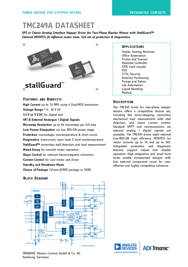 TMC249 Stepper motor driver 7 to 34V, for external P/N-Fets with SPI Interface, 64...
