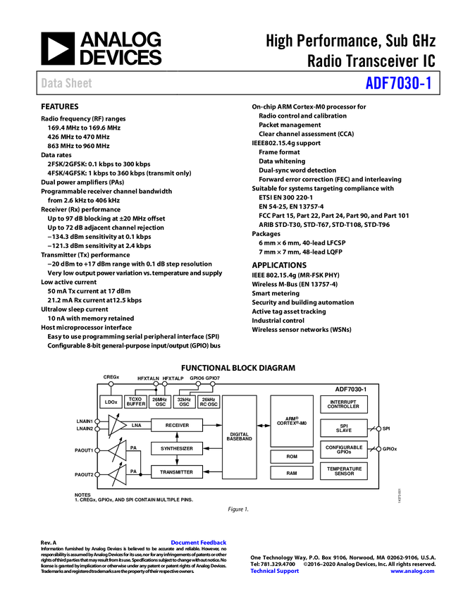 ADF7030-1 High Performance, Sub GHz Radio Transceiver IC