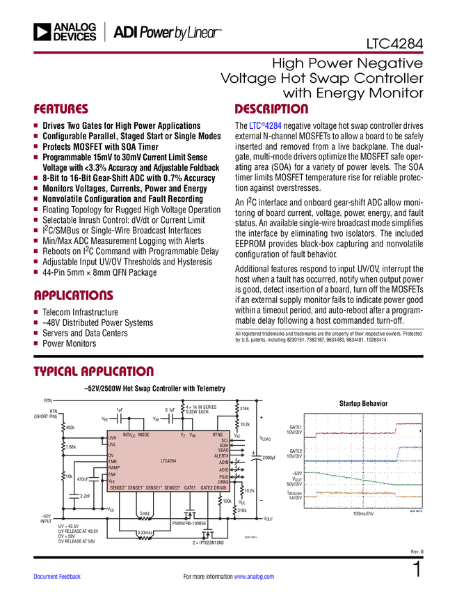 LTC4284 High Power Negative Voltage Hot Swap Controller with Energy Monitor