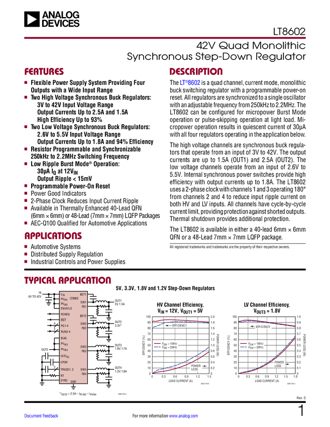 LT8602 42V Quad Monolithic Synchronous Step-Down Regulator