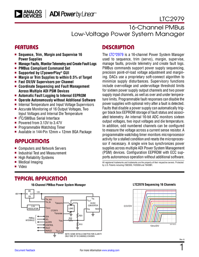 LTC2979 16-Channel PMBus Low-Voltage Power System Manager