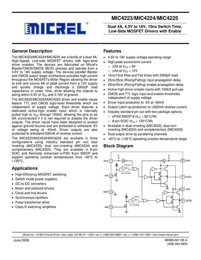 MIC4225 MIC4223/4224/4225 Data Sheet