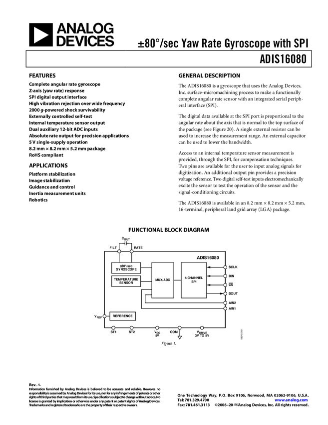 ADIS16080 ±80°/sec Yaw Rate Gyro with SPI Interface