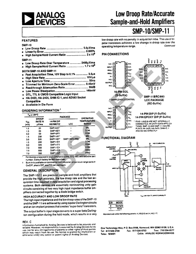 SMP11 Low Droop Rate/Accurate Sample-and-Hold Amplifier
