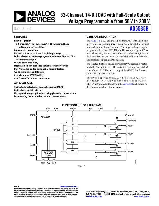 AD5535B 32-Channel, 14-Bit DAC with Full-Scale Output Voltage Programmable from 50...