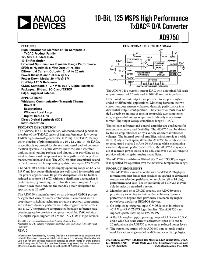 AD9750 10-Bit, 100 MSPS+ TxDAC® D/A Converter
