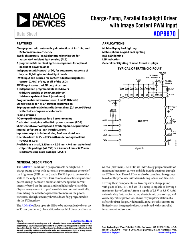 ADP8870 Charge Pump Parallel Backlight Driver with Image Content PWM Input