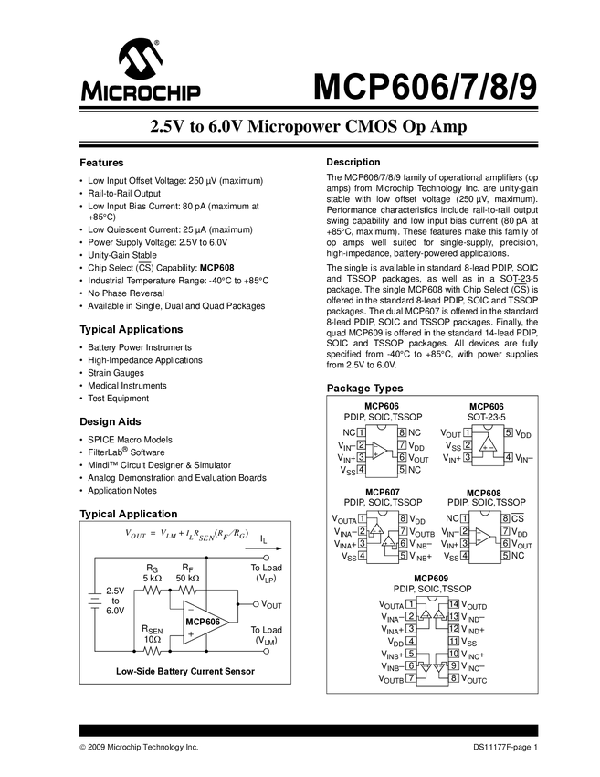 2.5V to 6.0V Micropower CMOS Op Amp (MCP606/7/8/9)