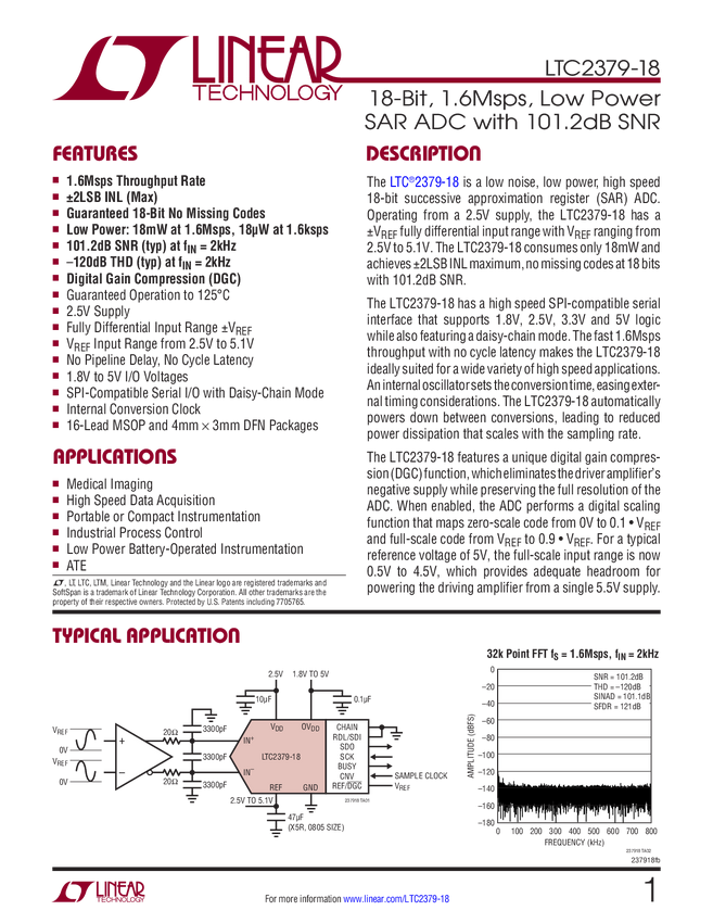 LTC2379-18 18-Bit, 1.6Msps, Low Power SAR ADC with 101.2dB SNR