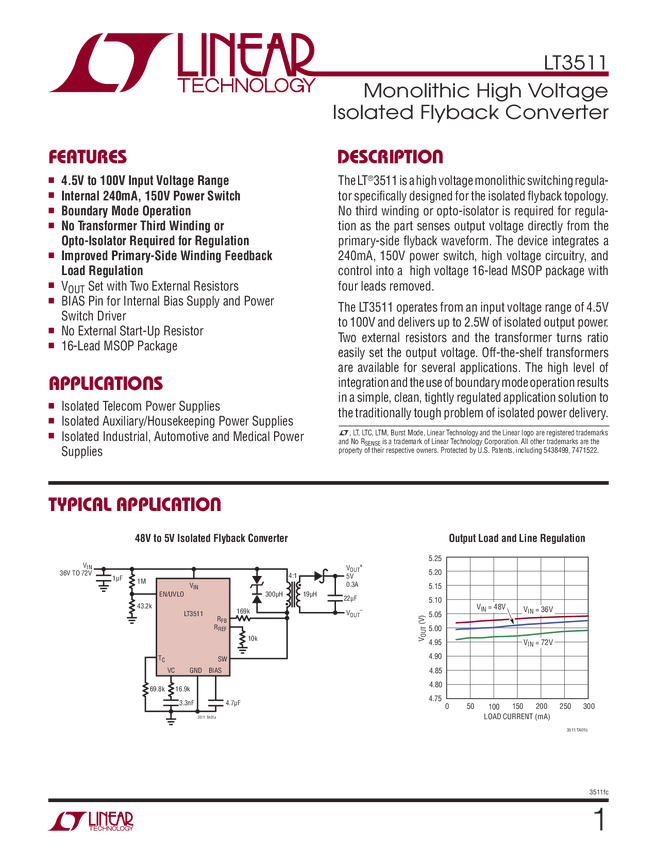 LT3511 Monolithic High Voltage Isolated Flyback Converter
