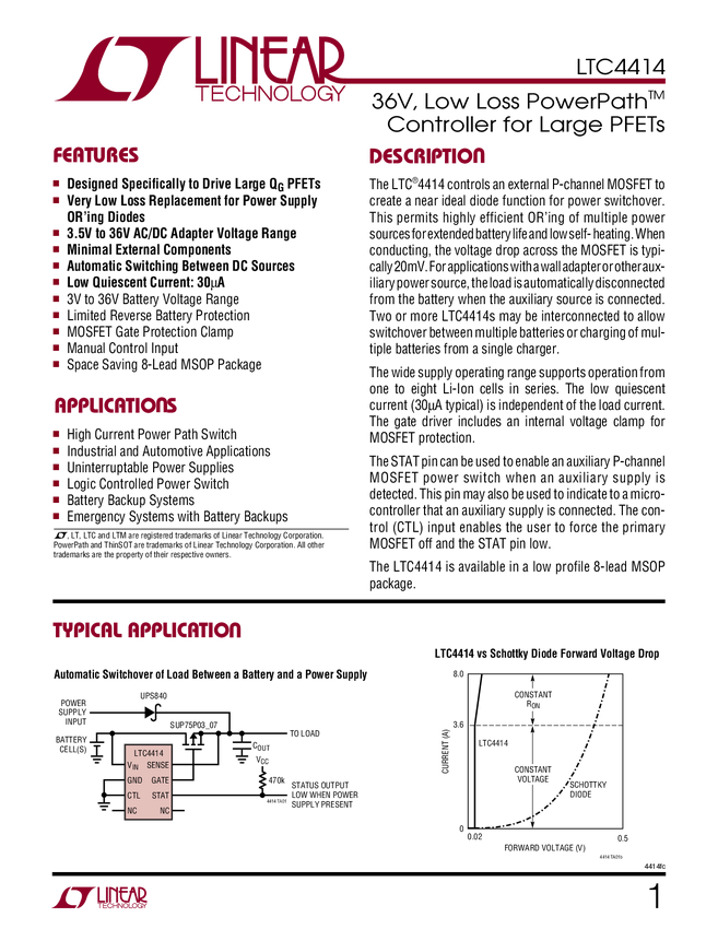 LTC4414 36V, Low Loss PowerPath Controller for Large PFETs