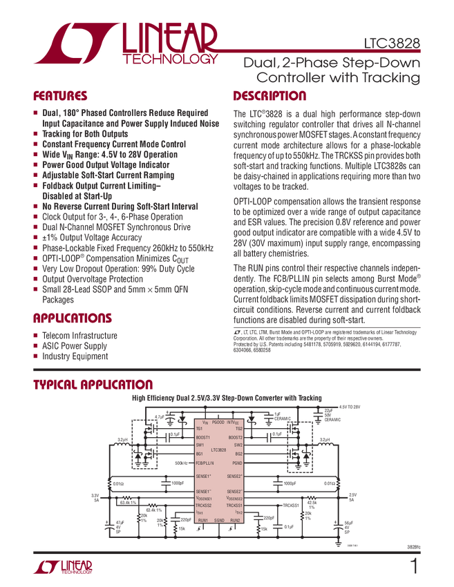 LTC3828 Dual, 2-Phase Step-Down Controller with Tracking