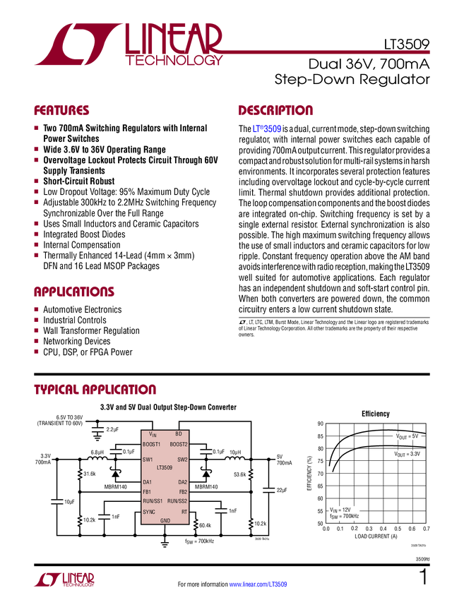 LT3509 Dual 36V, 700mA Step-Down Regulator