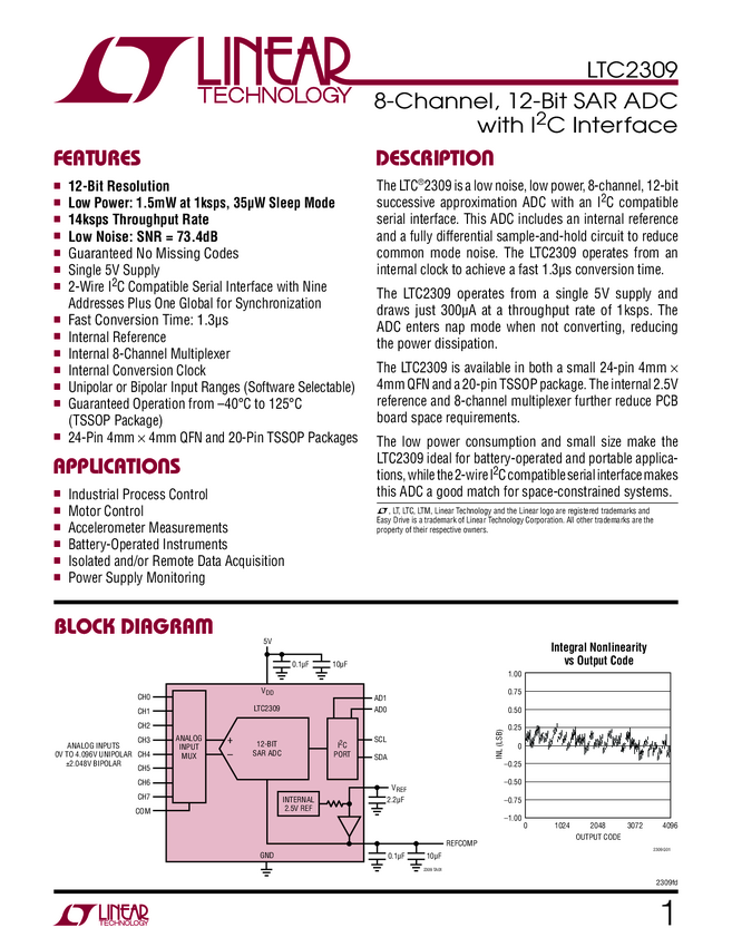 LTC2309 8-Channel, 12-Bit SAR ADC with I2C Interface