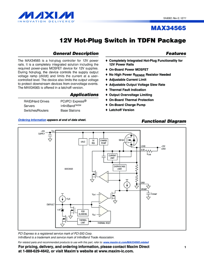 MAX34565 12V Hot-Plug Switch in TDFN Package