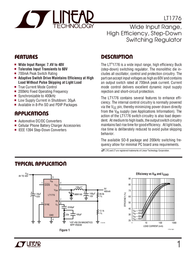 LT1776 Wide Input Range, High Efficiency, Step-Down Switching Regulator