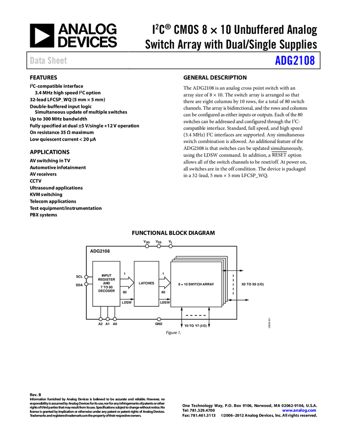 ADG2108 IC CMOS 8 × 10 Unbuffered Analog Switch Array with Dual/Single Supplies